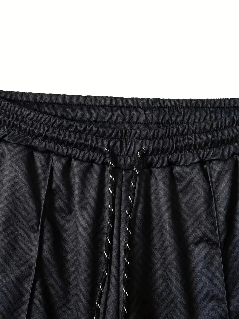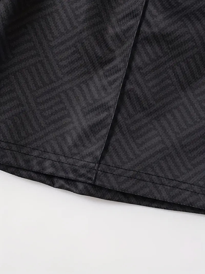 Designed for the modern man who values both style and practicality, this set features a breathable polyester fabric that keeps you cool even on the hottest days. The sleek lapel collar and subtle placement print add a touch of sophistication, while the lightweight shorts ensure freedom of movement.