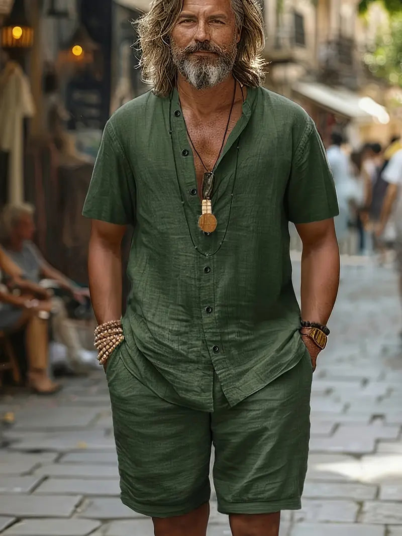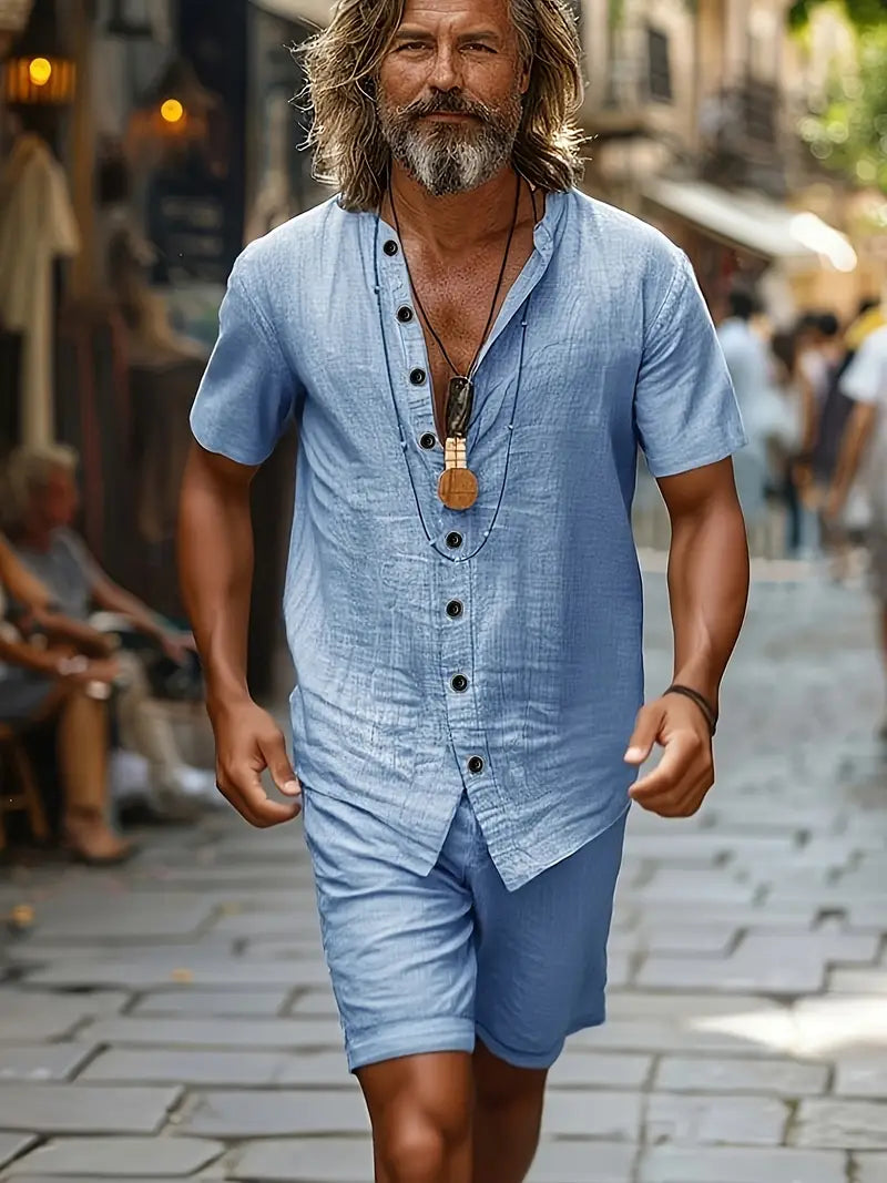 El Conjunto La Costa™ Doble no es solo ropa — es una declaración de estilo y libertad. Diseñado para hombres que valoran la comodidad sin renunciar a la elegancia, combina un corte relajado con un tejido premium de algodón puro, suave, ligero y transpirable. Perfecto para las tardes de primavera, escapadas a la playa o paseos urbanos con un toque de distinción.